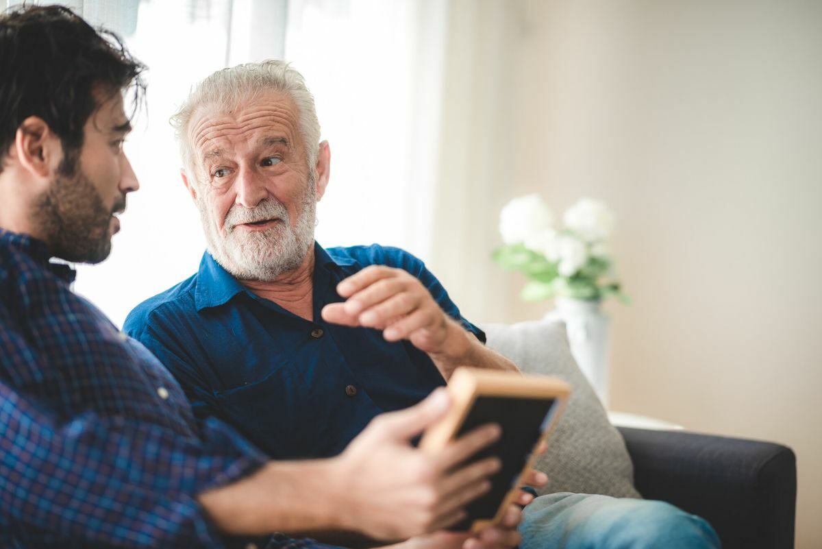 senior bearded father and adult son talking at home, 2 moustache hipster man and family concept Publié dans: Navigation de l’article Peut-on faire un don à son enfant sans payer d’impôts ?